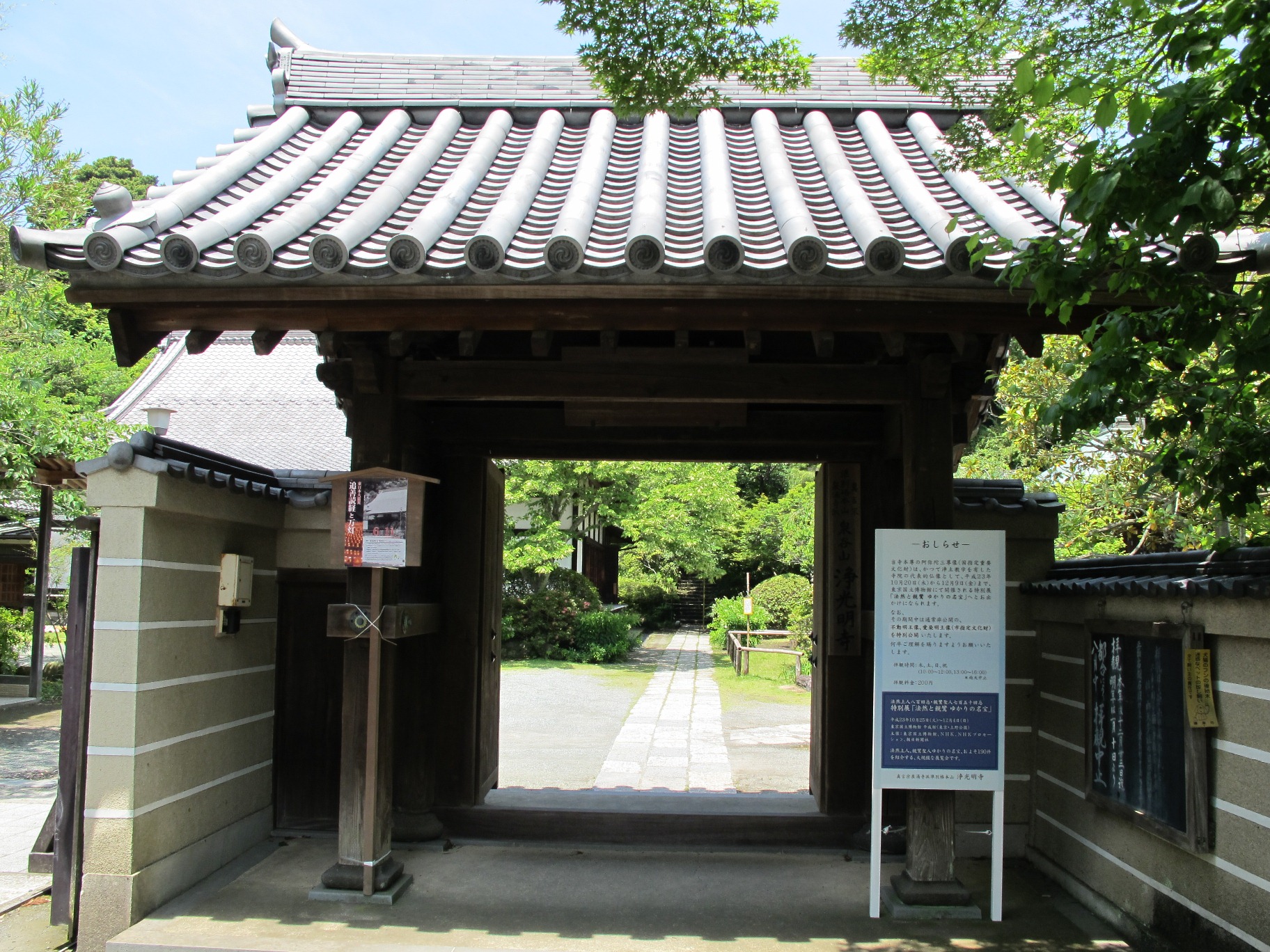 今小路から扇ガ谷へ向かい英勝寺総門前の踏切(寿福寺踏切)を渡る。そこから北へ向かって少し進み、右に折れて、直進すると左側に浄光明寺がある。山号は泉谷山(せんこくさん)。古義真言宗泉涌寺派である。開山は真阿、開基は北条時頼(5代執権)・北条長時(6代執権)。